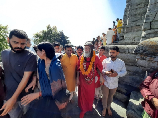 Mahamandaleshwar Swami Vishwatmanand Saraswati from Sunderbani Ashram of Jammu and Kashmir’s Rajouri district performed puja at temple and took procession from sanathan dharam sabha to tagore hall. He offered his prayers at the temple along with other saints from across the country.