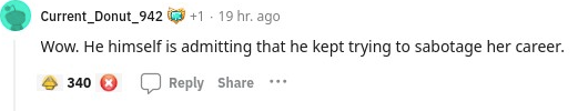 "Wow. He himself is admitting that he kept trying to sabotage her career."