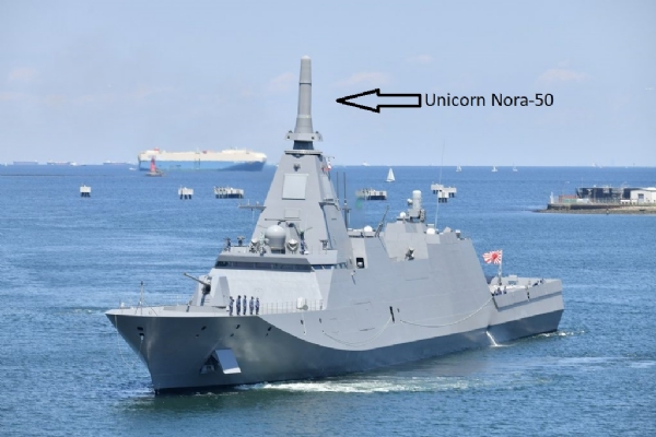 Closeup Pic: Unicorn Nora 50 installed on Japanese Stealth warship