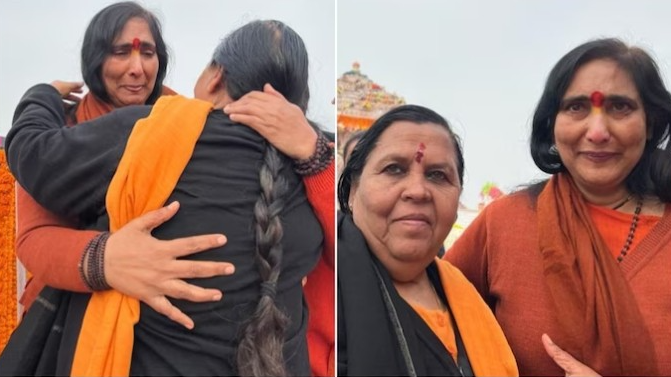 As Ram Mandir Pran Pratishtha has made the whole nation fill with joy and enthusiasm, Sadhvi Rithambara and BJP leader Uma Bharti, two leaders who were at the forefront of the Ram Janmabhoomi Andolan shared a heartfelt moment as history is being scripted at Ram Mandir in Ayodhya.