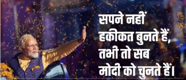 The campaign song says India's situation was deplorable and then the country chose Namo as the PM. Namo kept his promise and the dream of a developed country did not merely remain a dream. Namo chose the right paths and weaved reality, not dream. That's why everyone chooses Modi, the lyrics go on.