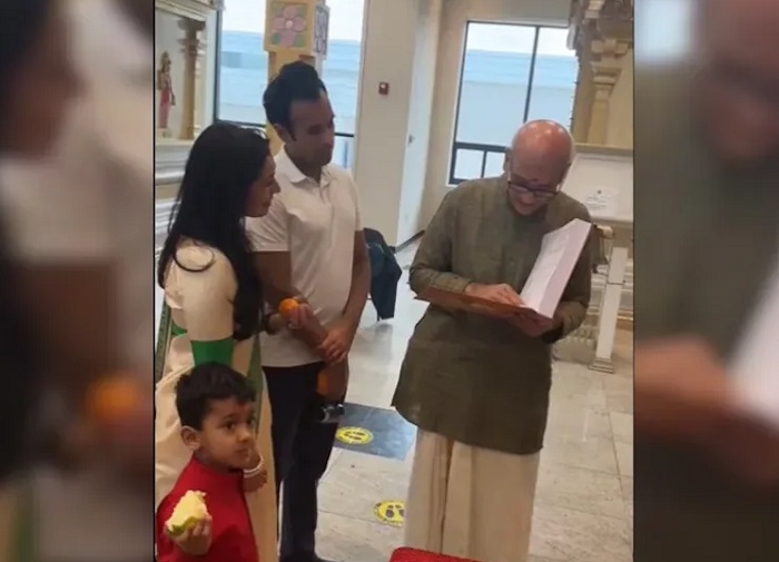 The Kerala Hindus of North America gifted the sacred 'Rig Vedam' to the parents of India-American US presidential candidate Vivek Ramaswamy, an occasion marked by deep reverence at the Dayton Temple, Ohio. A viral video shows Vivek's father conducting a ceremonial pooja for the ancient text before passing it on to him.