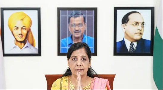 Notably, Sunita Kejriwal, the wife of Delhi chief minister Arvind Kejriwal, delivered a video message on April 4, reading out a statement written by the AAP supremo while he remains in jail. What made this message noteworthy was the backdrop, which prominently featured an image portraying Arvind Kejriwal in a jailed context, positioned alongside iconic figures Bhagat Singh and BR Ambedkar.