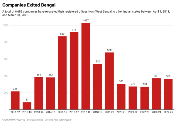Industries moving out of Bengal are not just an issue for the state but also for the nation. As the country’s fourth-most populous state, Bengal’s economic underperformance slows India’s overall growth and worsens regional inequality. The exit of 6,688 companies means thousands of formal sector jobs lost. With fewer opportunities, many skilled professionals are forced to leave the state.